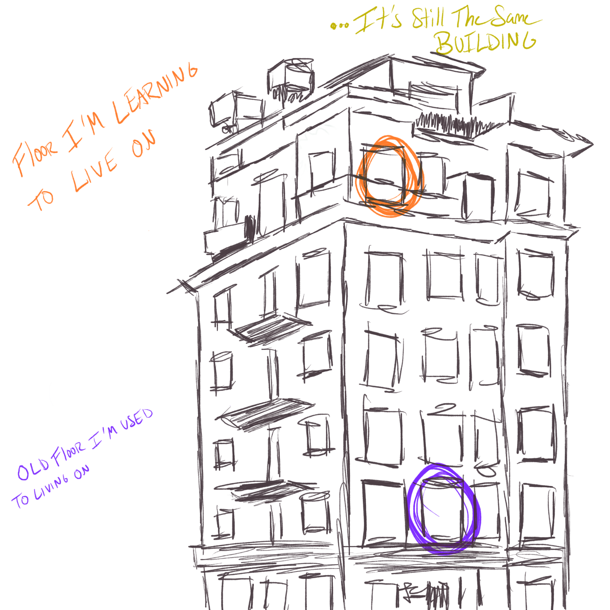 Same apartment, different floor. Same relationship, different floor. Same nervous system, slowly learning it does not have to stay pressed against the ground forever.